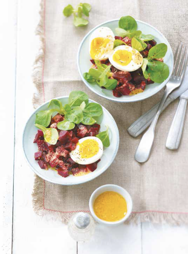 Salade de mache, betterave et oeuf mollet
