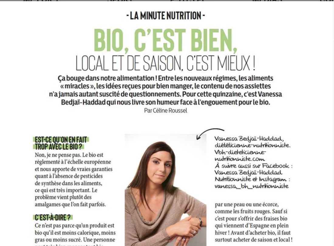 Le bio à l’honneur pour « La minute nutrition » du dernier numéro de @gourmandmagazine.